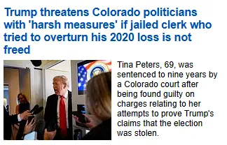 Trump threatens CO politicians with 'harsh measures' over jailed clerk