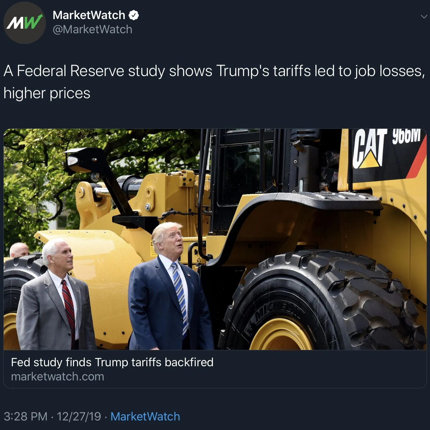 MarketWatch first reported the study, noting that 10 primary industries were hit by retaliatory tariffs and higher prices, including producers of magnetic and optical media, leather goods, aluminum sheet, iron and steel, motor vehicles, household appliances, sawmills, audio and video equipment, pesticide, and computer equipment.