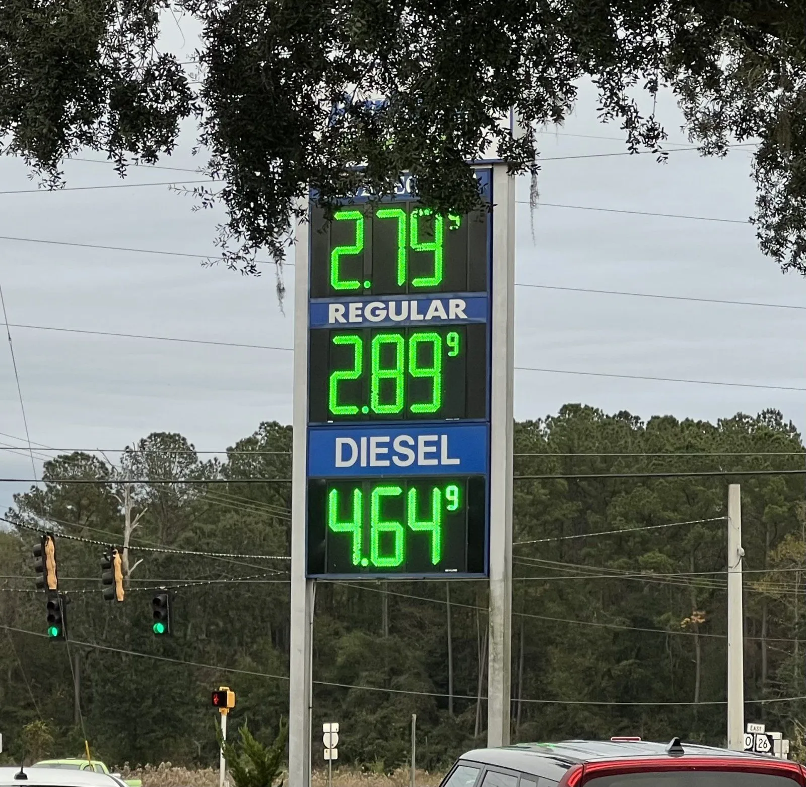 The tree blocks the top text. But that is the club price for those who use the chain stores card to get the gas.