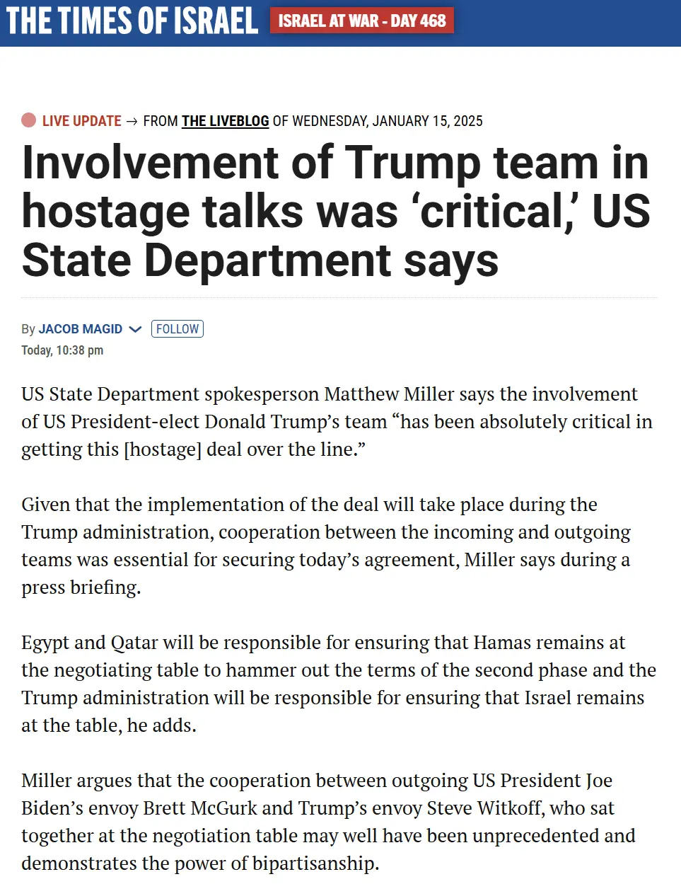 Another round of talks is planned in Doha on Tuesday morning to finalize remaining details, with Biden’s envoy Brett McGurk expected to attend alongside Steve Witkoff, who will serve as Trump’s Middle East envoy once the president-elect takes office on January 20, a date which has become a de facto deadline for the talks. The two attended talks overnight Sunday that saw the sides initially reach a breakthrough, the official said.