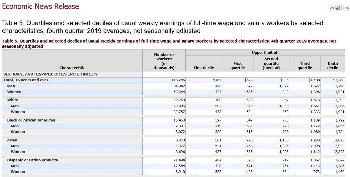 $54,444 per year. That said, the number conceals considerable variation by gender. For example, male 35- to 44-year-olds earn a median salary of $1,162 per week while women in the same age bracket earn a median $923 per week.