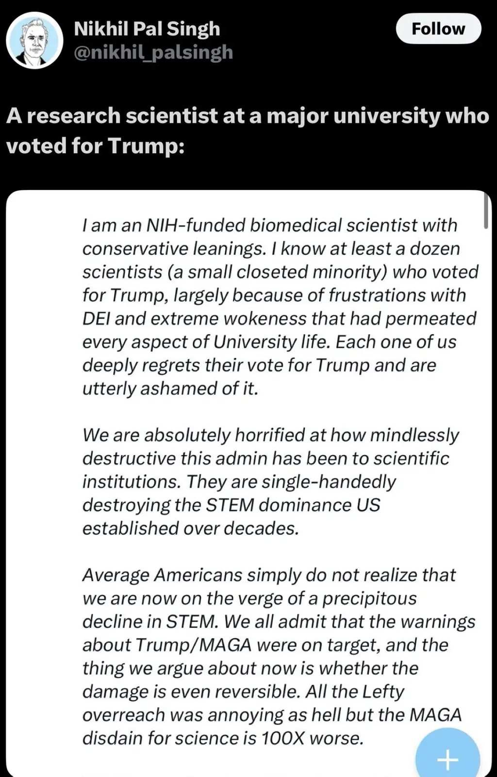 I agreeThat's a bit of a naive question in today's political climate, don't you think?