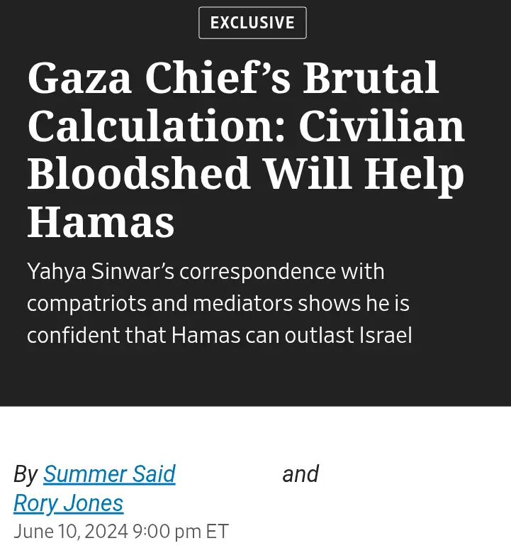 Gaza Chief’s Brutal Calculation: Civilian Bloodshed Will Help Hamas.