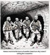 Note how one-sided all of this is: While denouncing alleged Israeli atrocities[sic], the manifesto has not one word of censure for Hamas or its brutal tactics, which include seizing hostages and perpetrating sexual violence, in addition to committing wholesale murder. Indeed, even though the protesters claim to care about Palestinian lives, they do not denounce Hamas for stealing international aid to build its tunnels and missiles or for using civilians as human shields. They call for Israel to stop fighting but not for Hamas to release its hostages or surrender.