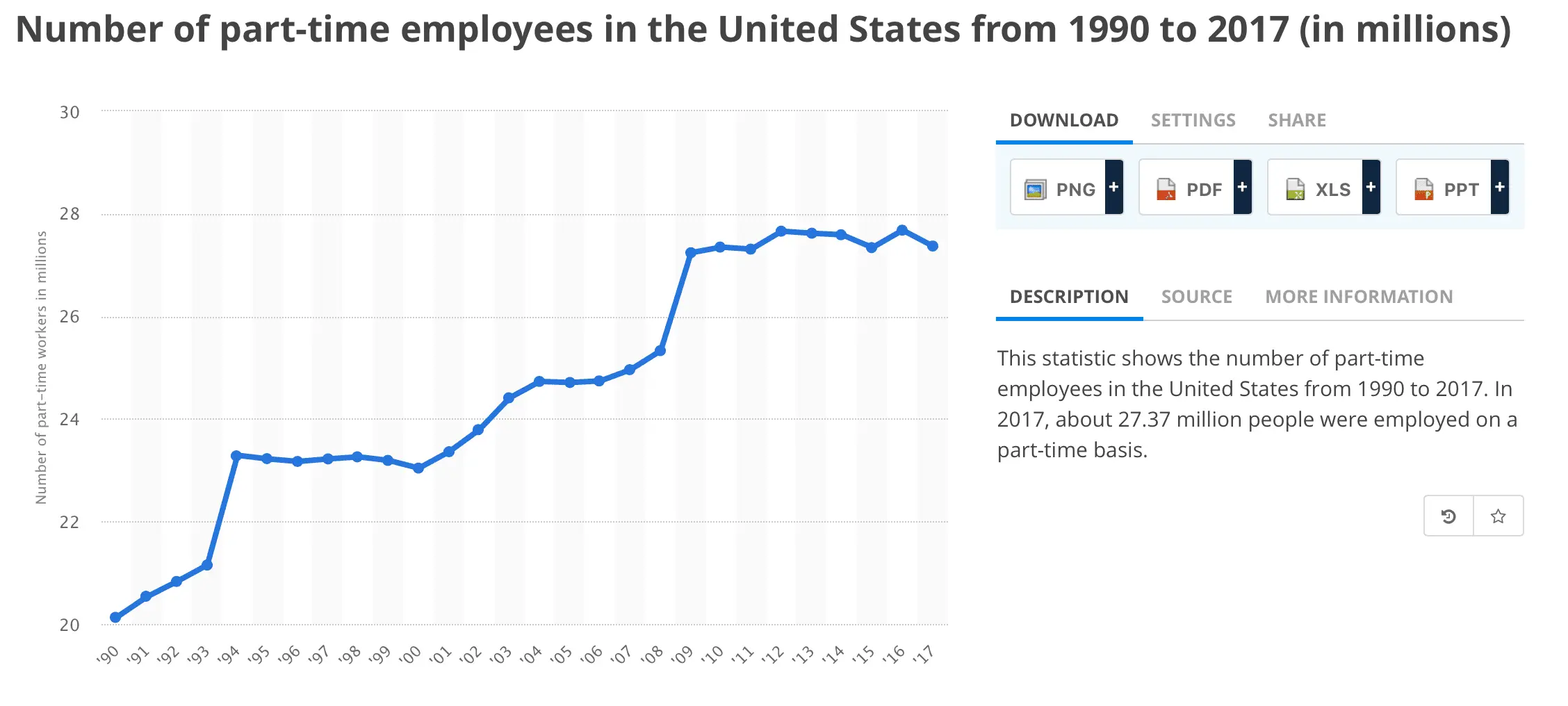 Number of part-time employees in the U.S. 1990-2017 | Timeline