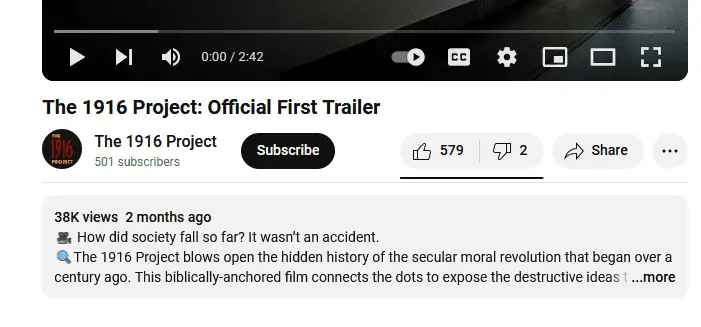 "The 1916 Project is a documentary that exposes the hidden history of the secular moral revolution, and the architects of our current culture of death."