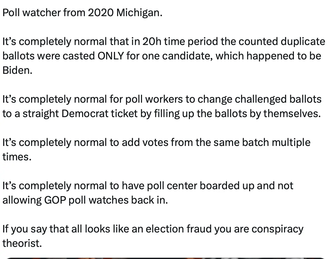 wowListen it has long been time for the election deniers to give up the ghost. You can go on forever throwing up details of imagined voter fraud and a nation wide conspiracy of Democrats to illegally win the election and manufacture story after story.