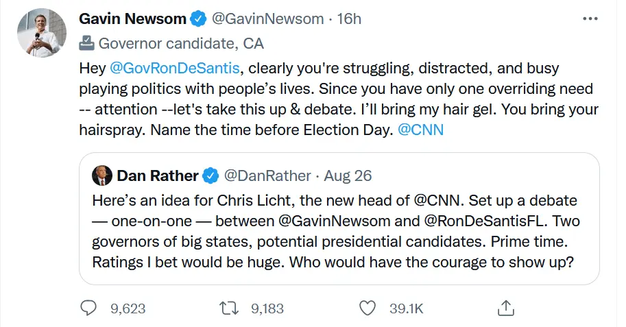Maybe you are right, and his attack on DeSantis is just some kind of futile attempt to stop the stream of people leaving California for Texas and Florida.