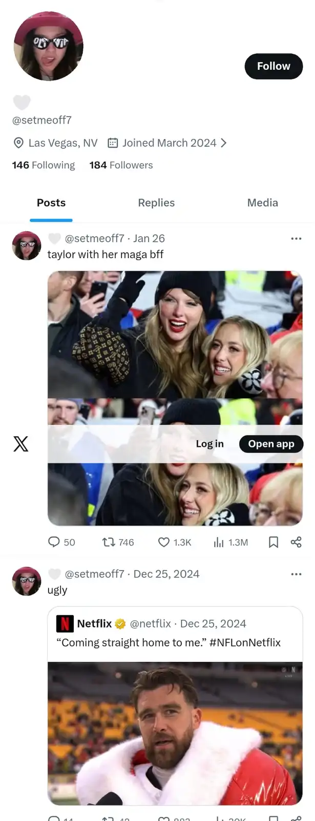 A month after tweeting (12.25.24) on Travis Kelce "ugly".