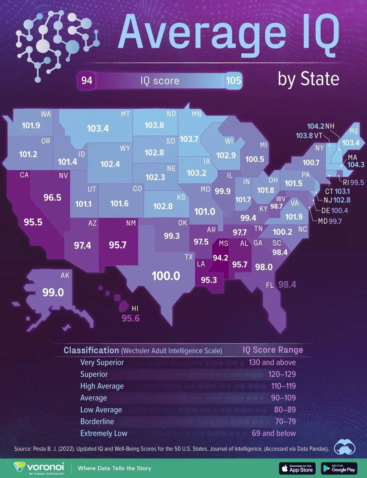 Mapping Average IQ Score By State