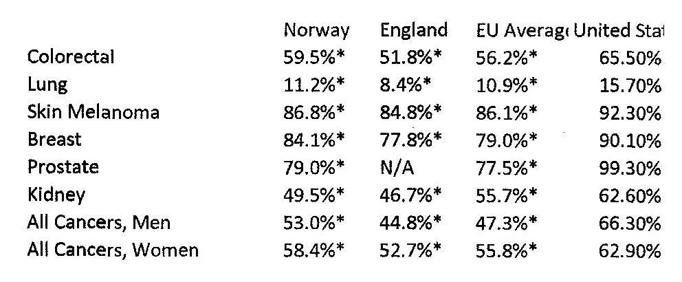 (1) Americans have better survival rates from both common and rare cancers than Europeans? (Sources: Lancet Oncology, 7, No. 2 ( February 2006): 132-40; Verdecchia et al., "Recent Cancer Survival in Europe : A 2000-02 Period Analysis of EUROCARE-4 Data," Lancet Oncology, No. 8 (2007): 784-96.)
