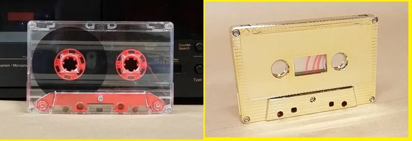 The 1980s was a boom in consumerism-consciousness and the controversial Reaganomics altered the way society pundits talked about mass-mobilization of moneys in a developed civilization that was nevertheless democratic-capitalist (not socialist-communist). The various media 'gadgets and toys' sold during the 'Big '80s' included JVC/Aiwa stereos, RadioShack batteries, laser-disc cinema, and of course, compact audio cassettes (for Sony Walkmans!). Stockbrokers carried Walkmans like Prozac/Tylenol. There were two 'aesthetics-trends' in compact audio cassette design --- clear/transparent and laminated/colored. Some called this the 'Mechanical vs. Cosmetics' division-bell.