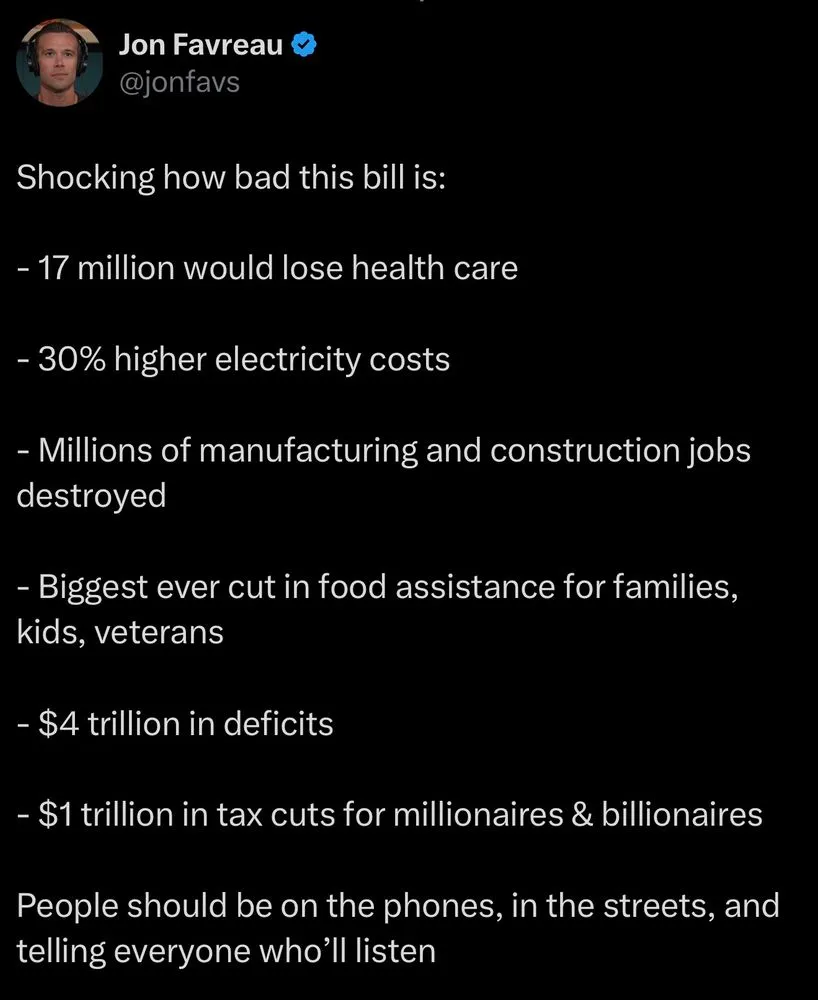 When some of you MAGA are going to have to move mom, dad, grandma, or grandpa out of the facility and take over their bathroom routines and baths, you'll be wondering what happened. Or you can call your Reps and tell them to stop it. Why are you so invested in billionaires saving personal money so that they can buy another plane, another yacht, another island.