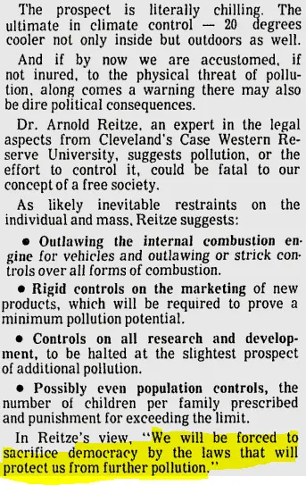 1971 – Another Ice Age? Pollution Blocking Sunlight (The Day, November 1, 1971)