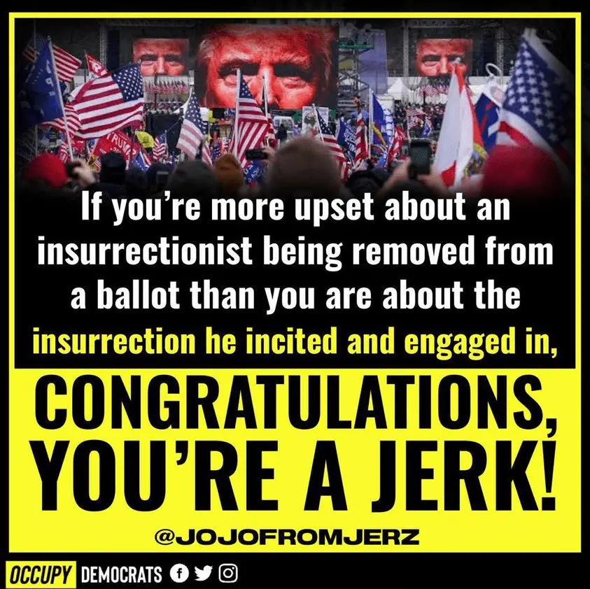 I agree with Luttig and Tribe. Section 3 of the 14th Amendment of the U.S. Constitution seem clear to me! What will SCOTUS do? What do you think?