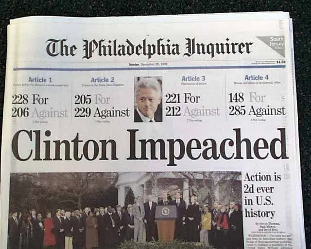 The impeachment charges only sticks if he was convicted in the Senate, he remained in office afterwards, which means the Impeachment charges FAILED!