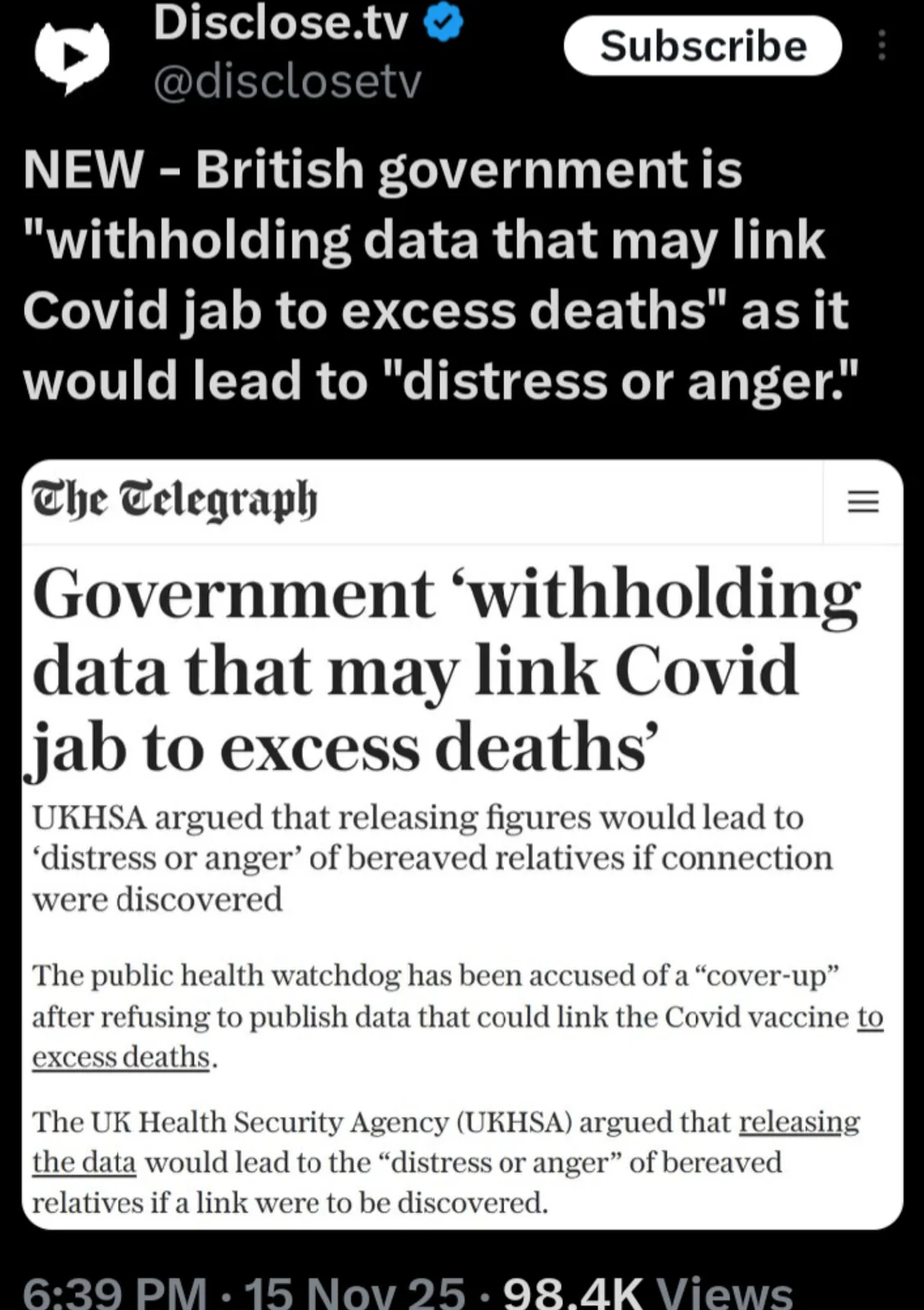 Bravo for you. The pressure was on from our family for us to take the vaccine. We resisted thanks to my avid research of alternative news media.I personally refused to take the C o v i d 1 9 vaccine and thus I was forced to retire from my job as a school janitor one day before I was scheduled to be put on Unpaid Administrative Leave anyway. I simply drove to Mississauga and soon found a job where I did not have to take the vaccine. I am so glad to see that the truth is coming out about this. I already knew because I listened to R o b e r t M a l o n e M.D.