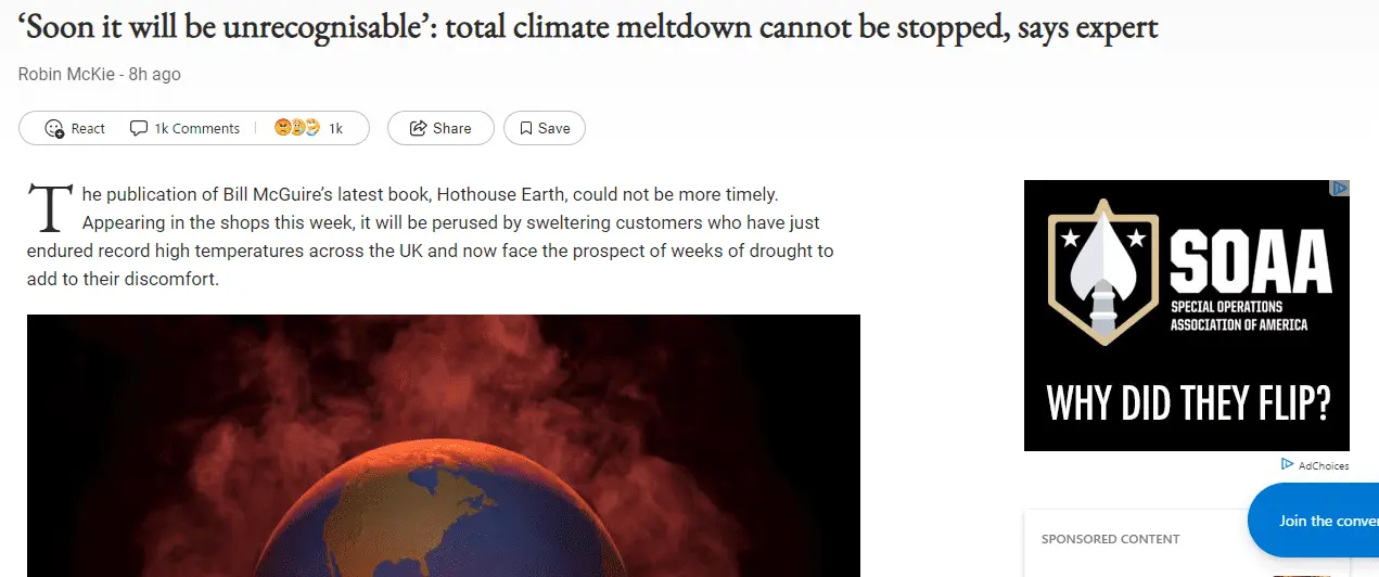 And we should be in no doubt about the consequences. Anything above 1.5C will see a world plagued by intense summer heat, extreme drought, devastating floods, reduced crop yields, rapidly melting ice sheets and surging sea levels. A rise of 2C and above will seriously threaten the stability of global society, McGuire argues.