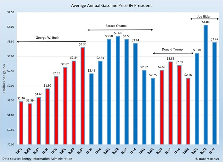 Under Trump gasoline was about $1.80 a gallon….but you voted against that