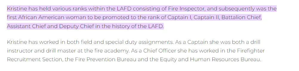 So what was the standard she didn't meet when she worked in the 'field'?She is a senior level administrator I believe, I doubt she rides fire trucks now, if she ever did.