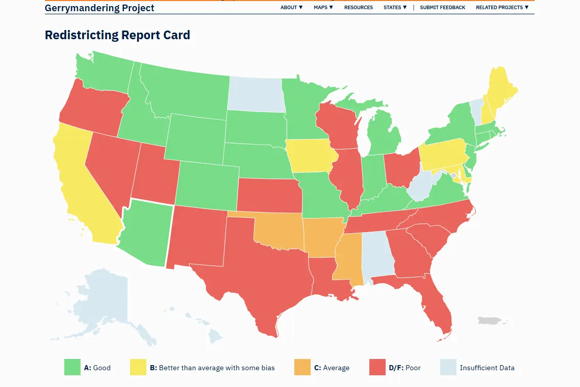 Any map that claims Maryland is better then avg is a jokeIm against it anywhere. Here are the worst offenders. The places not gerrymandered by the right are overwhelmingly white - like the Dakotas. Anywhere held by the right that is diverse is an apartied state.