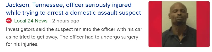 Jackson, Tennessee, officer seriously injured while trying to arrest a domestic assault suspect