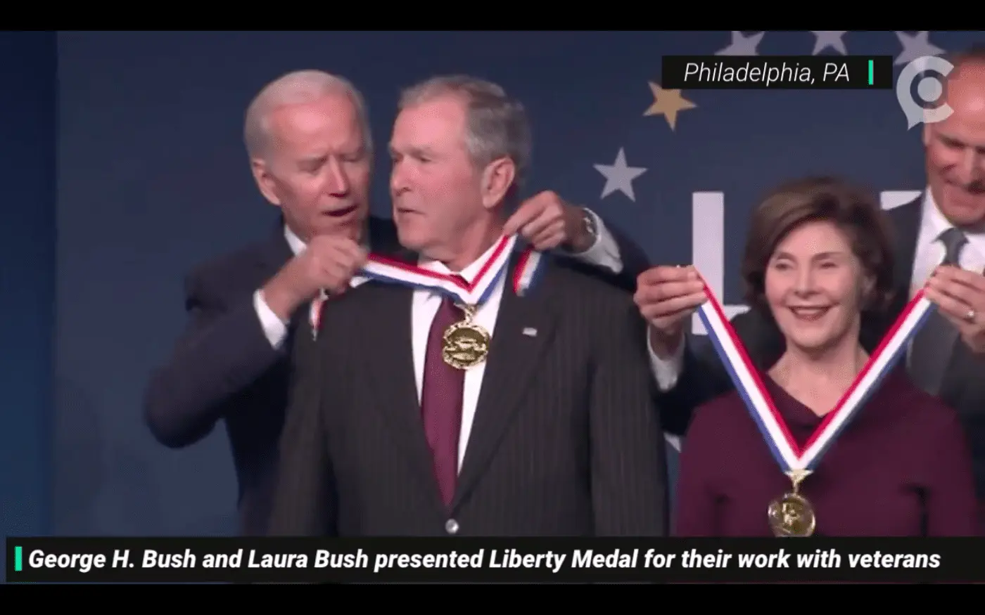 Two ******* morons and disgusting warmongers. It’s outrageous that the msm is trying to rehabilitate dumbass W. The guy needs to be imprisoned in solitary at Supermax, next to the Unibomber and Ramzi Yousef.