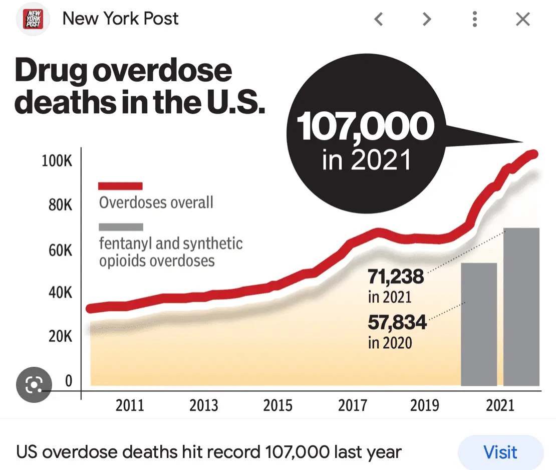 Drug smuggling of Fentanyl has caused nearly double the fentanyl deaths under Biden