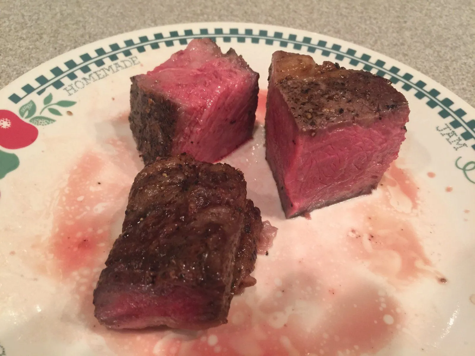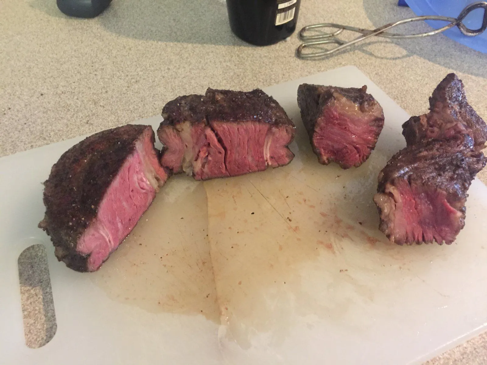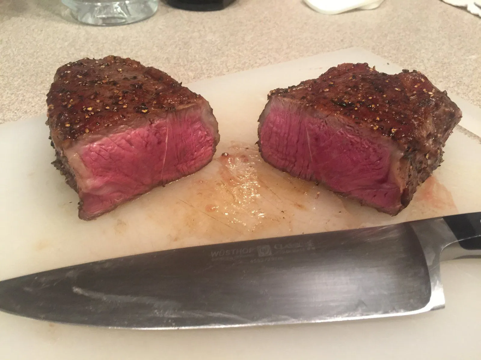 The reverse sear gives you a perfectly cooked rare steak all the way through edge to edge.