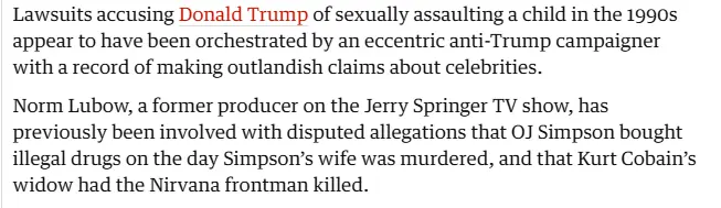 So you are saying the Epstein Files is a Anti Trump plot...Is it the 13 year old the one from this story orchestrated by the Jerry Springer show's producer that was debunked a decade ago?