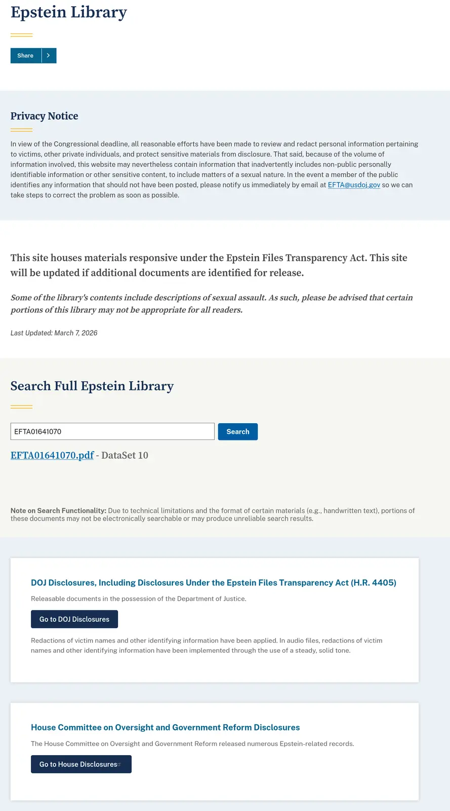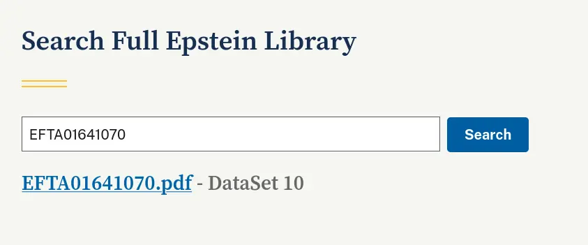 I don't see that from the site, not sure, I posted where I was, DOJ and the epstein search engine says no results.