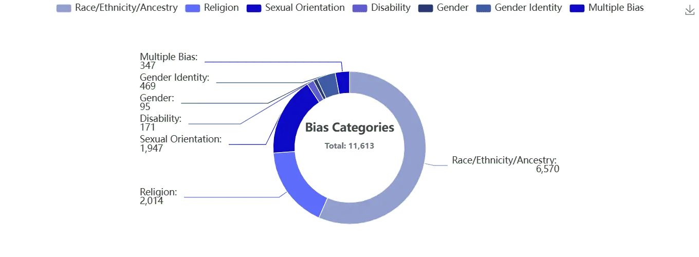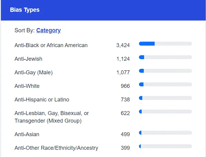 The FBI's Uniform Crime Reporting (UCR) Program serves as the national repository for crime data voluntarily collected and submitted by law enforcement. Its primary objective is to generate reliable information for use in law enforcement administration, operation, and management. The 2022 hate crimes data, submitted by 14,631 law enforcement agencies, provide information about the offenses, victims, offenders, and locations of hate crimes. Of these agencies who submitted incident reports, there were 11,634 hate crime incidents involving 13,337 offenses.In 2022, there were 6,570 race based hate crimes. 2,014 Religious based hate crimes.