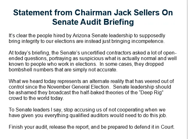 The AZ Secretary of State is obstructing the audit to the point where the AG is demanding that she turn over the evidence. But good luck with that. The SOS was against the audit from the start.