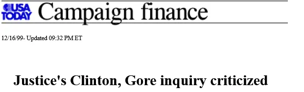 FBI agents were also denied the opportunity to ask President Clinton and Vice President Gore questions during Justice Department interviews in 1997 and 1998 and were only allowed to take notes. During the interviews, neither Clinton nor Gore were asked any questions about fund-raisers John Huang and James Riady, nor the Hsi Lai Buddhist Temple fundraising event led by Maria Hsia and attended by Huang and Ted Sioeng.[66]. ."