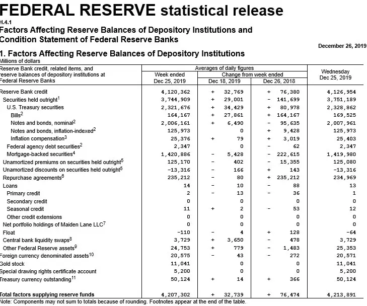 FRB: H.4.1 Release-- Factors Affecting Reserve Balances -- Thursday, December 26, 2019