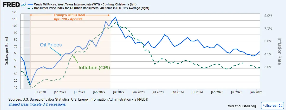 The price surge happened because OPEC cut production in 2020 and it didnt catch up until 2022 when the world reopened from covid. The US was pumping record oil so I am not sure what point you think you are making.