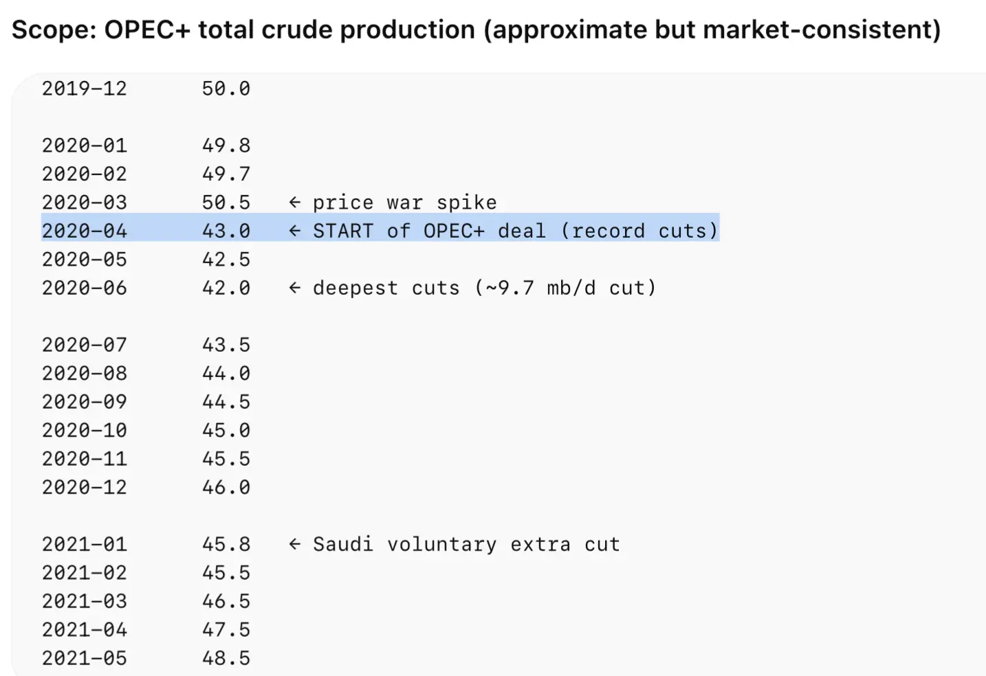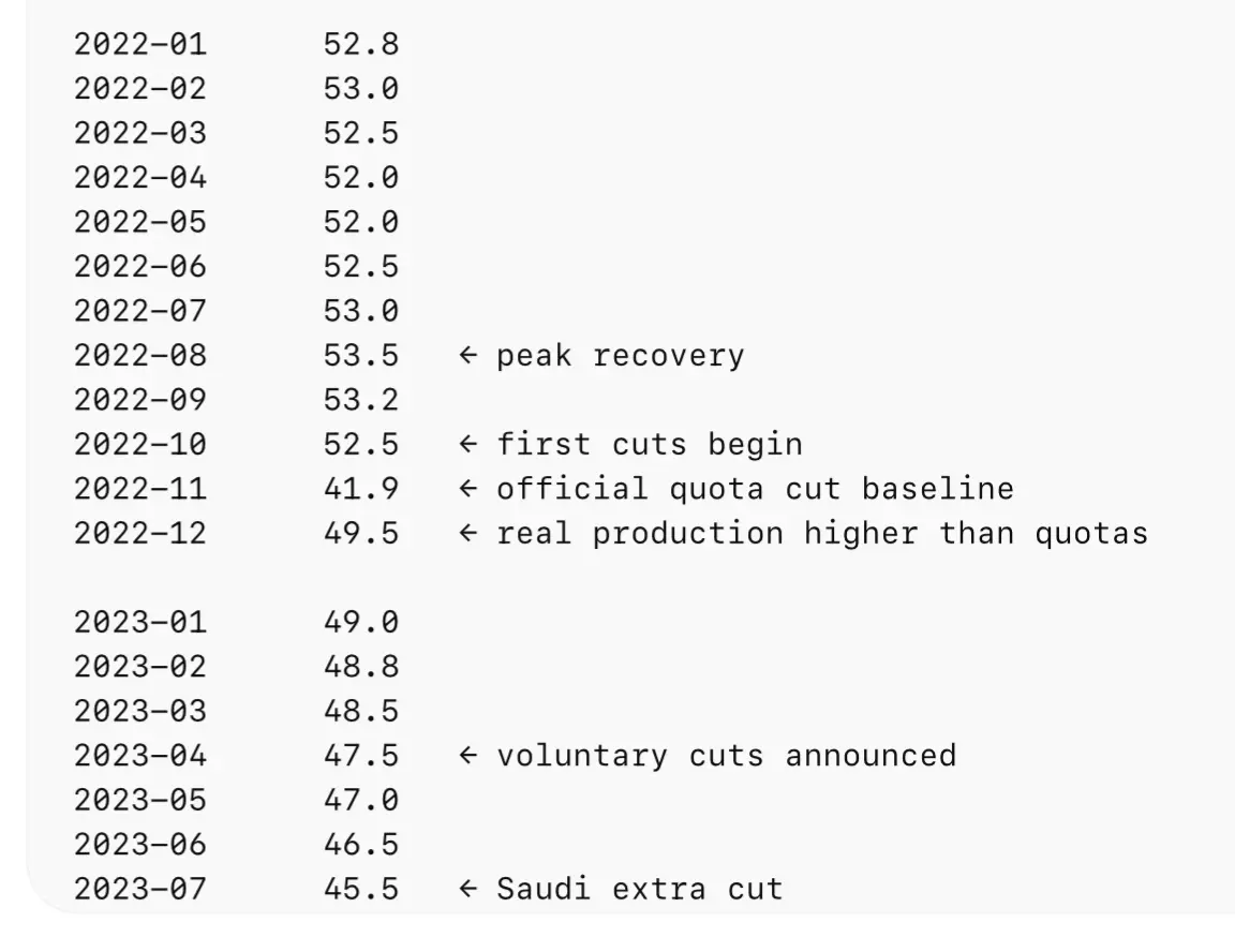 I guess I shut 'thetoddster' up,If you can find a chart for OPEC+ from 2020 to 2023 that shows they cut production for 2 years,