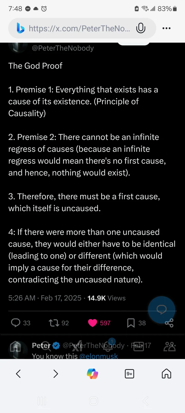 And we're back to that again. If you so easly say god simply is and always has been, why is it so hard to say the bg bang theory can't be right because we can't yet prove why it happened? Explain your logic.Existence itself because God is existence. God isn't a thing. Things have causes.