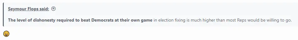 I don't know the solution. We won't have honest elections with Dems in power, and we can't put Dems out of power without honest elections.