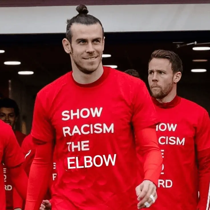 Gareth Bale elbows Czech racist ,Ondrej Kudela, in an International match in Cardiff. Best part is that Kudela got sent off and not Gareth. Kudela is a shit who caused a near riot in a game last week after calling a black player a monkey.