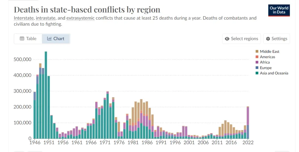 Mongol ulus is a jail of nations. Global conflicts deaths & wars were at their lowest after the fall of USSR & when Moscow - Mongol ulus was still recovering financially. USSR/Moscow - Mongol ulus uses asymmetrical warfare & reflexive control to create civil wars & destabilization of societies. While financing the peace/anti-war movements