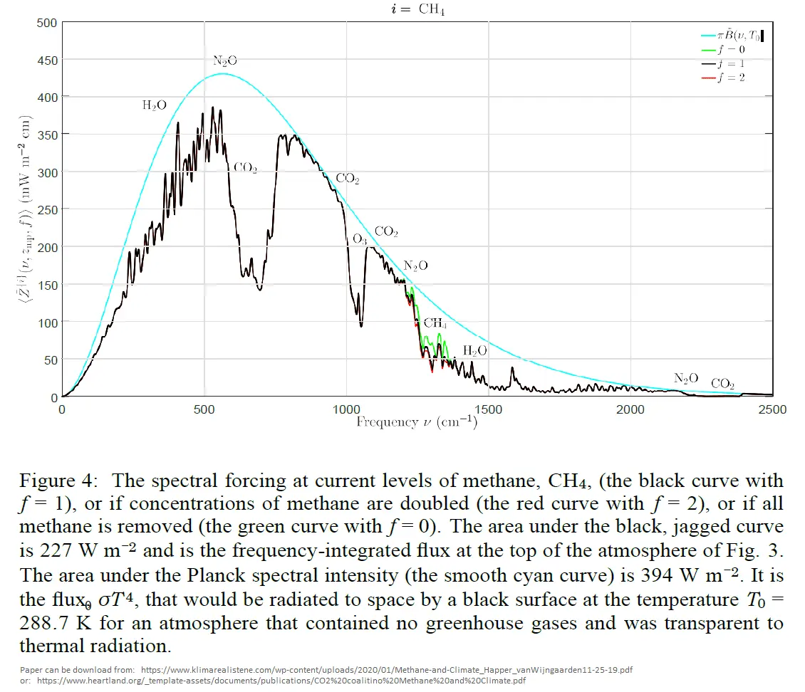 Also, regarding the 84 times GWP for CH4….99.9+% of IR photons that hit either a CH4 or CO2 molecule will rattle the molecule a bit harder and warm up the thousands of other air molecules around them. Emitting an IR photon of the same energy is a relatively rare occurence compared to kinetics.