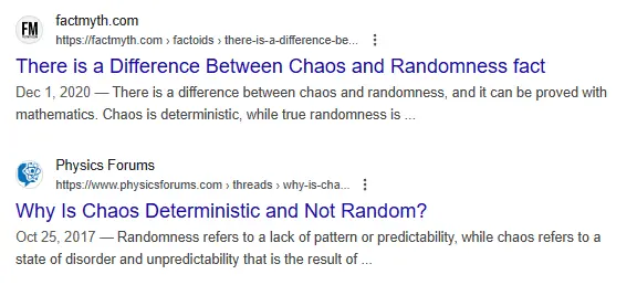 So there is no difference? I don't want to argue I want to know if you think they are the same!You want to argue with me about the "difference" between chaos and randomness. That proves you don't understand either term.