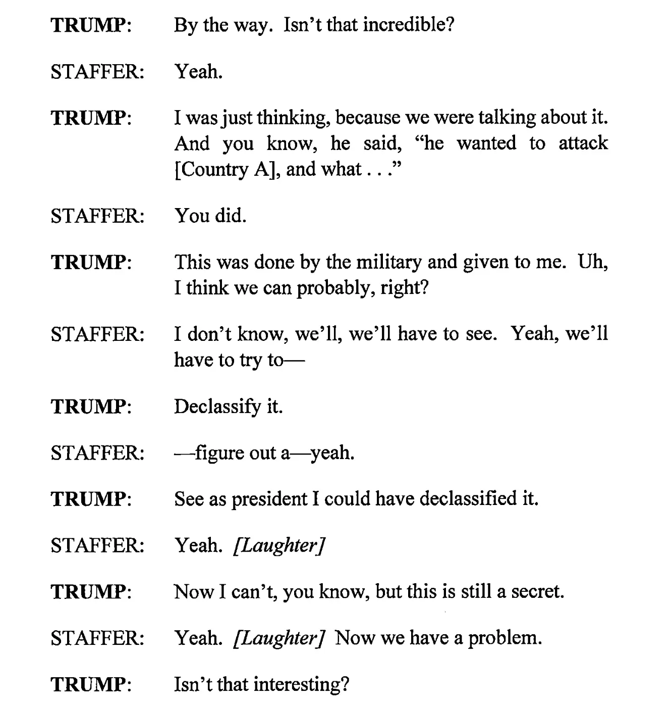 Read the transcript above. Trump admits they were classified.