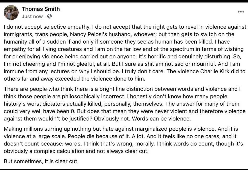 This is disturbing. I didn't know about this. But I truly am not very familiar with Charlie Kirk, so I don't know how extreme and violent his rhetoric got.