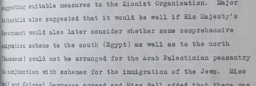 This is one of the earliest documentary records of the desire by Zionists, to ethnically cleanse "Arab Palestinian peasanty" (they used the much nicer sounding phrase "comprehensive emigration scheme") into Egypt and Syria - this was in 1919 thirty years before there was any defined "state" of Israel, the ethnic cleansing and Zionist "settlement" building has been underway for over a hundred years.