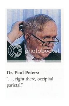 Dr. PETERS - It seemed to me that in the right occipitalparietal area that there was a large defect. There appeared to be bone loss and brain loss in the area.