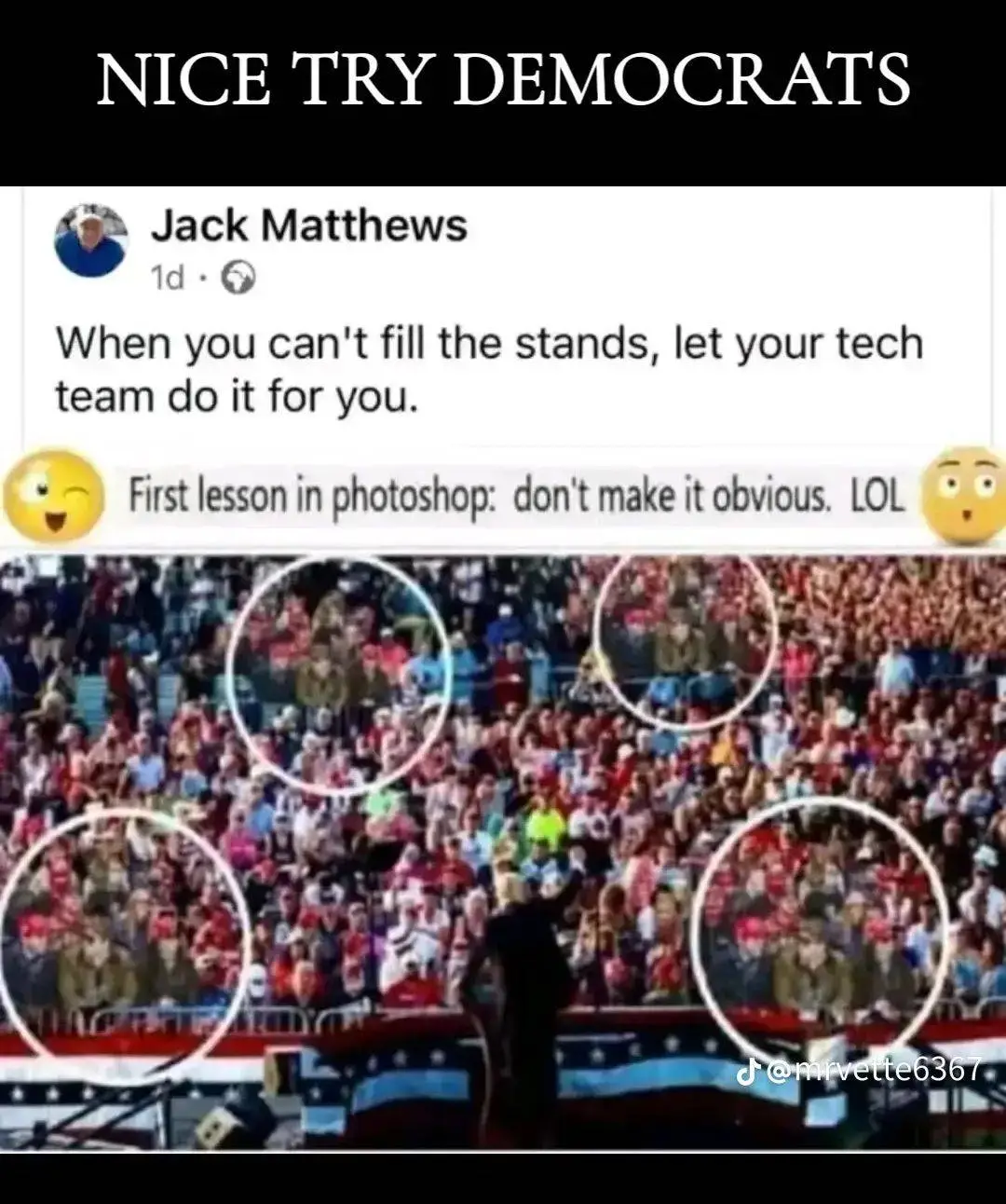 Just yesterday, the Media all the usual Democrat shills were gushing about the "overflow" YUUUUGE crowd for Kamala in Phoenix. Oops! Desert Diamond as I pointed out is a mid size venue that seats only 20,000. As we all know that is "Trump Change" compared to a Trump Rally. This proves the fundamental dishonesty of the election coverage. In every instance, the Democrat Media Machine is skewing the numbers or outright lying to turn Kamala into Obamala. And you know what? There may just be enough gullible Americans to believe Kamala is drawing crowds "similar" to Trump. That is total nonsense.
