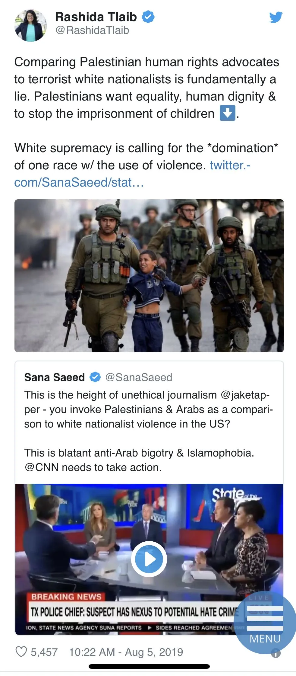 Nationalists have never said anything but God bless America. Supremists said you will not replace us, but nothing about eradication and extermination of any race. Stop lying Tlaib.