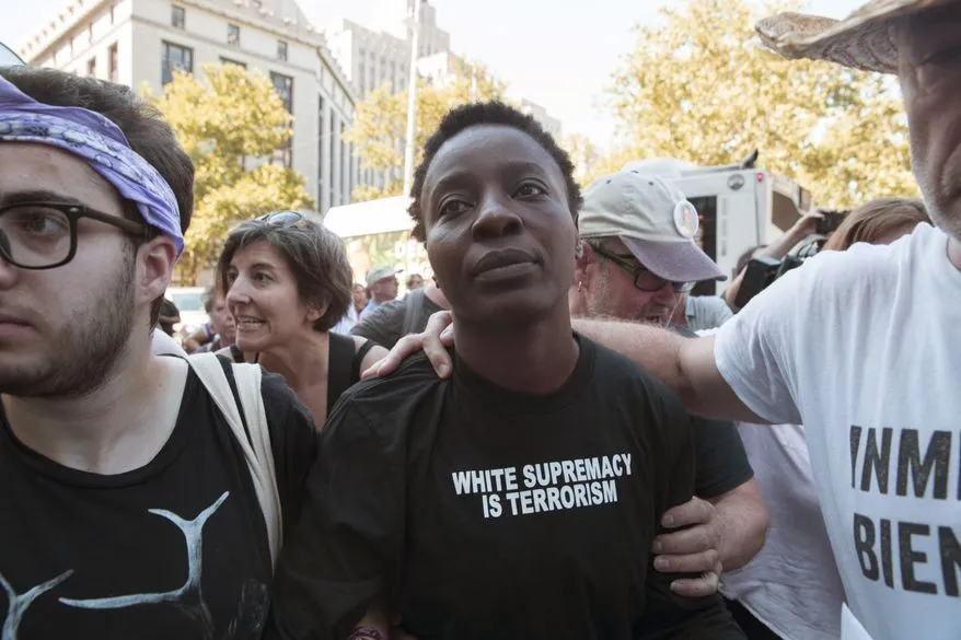Her T-shirt: "White supremacy is terrorism."